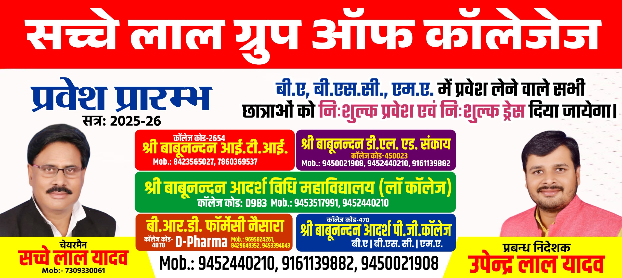 श्री बाबूनन्दन आदर्श पी०जी० कॉलेज, रामपुर बन्तरा, नन्दगंज, गाजीपुर (उ०प्र०) का संक्षिप्त इतिहास-गंगा और घाघरा दोआब की साझी संस्कृति तथा उर्वरा मिट्टी समय-समय पर ऐसे सपूतों को जन्म देती रही है, जिनका नाम इस अंचल के ही नहीं बल्कि भारतीय शिक्षा के इतिहास में सुनहरे पन्नों पर स्वर्णिम अक्षरों में अंकित है। आज मनुष्य अपने कर्तव्यों, मूल्यों, आदशों तथा परम्पराओं को छोड़कर आधुनिक सभ्यता के अनुसार खुद को बदलने का प्रयत्न कर रहा है, यह सही भी है क्योंकि विकास तभी होगा जब बदलाव होगा किन्तु यहाँ यह कहना गलत नहीं होगा कि अपनी परंपराओं में बदलाव तो सही है लेकिन उन्हें छोड़ना गलत है। आज समाज को एक ऐसी शिक्षा पद्धति की जरूरत है जो समाज को विकास के सर्वोच्च स्तर पर उसकी परंपरा और संस्कृति के साथ लेकर जाय, उसे भुलाकर नहीं। इसी उद्देश्य को नींव बनाकर जनपद-गाजीपुर के ग्रामीण क्षेत्र ग्राम रामपुर बन्तरा, नन्दगंज, गाजीपुर (उ०प्र०) में सन् 2005 में महाविद्यालय की स्थापना हुई और आज महाविद्यालय उसी उद्देश्य को पूरा करता हुआ विकास के शिखर पर पहुंचते हुए लगभग विश्वविद्यालय का स्वरूप हांसिल कर चुका है।......Read More